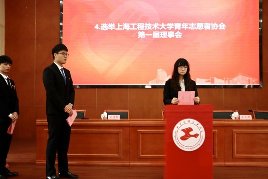 会议审议通过了《上海工程技术大学青年志愿者协会章程》。与会代表选举产生了21名校青志协第一届理事会理事:丁佳妮、王维强、王一涵、王雁、沈杨、朱文立、何闻达、杜周琳、肖书嫣、陈玥、张树乾、张艺新、张惠婧、周艺宁、赵越群、姜剑、徐靓雯、顾佳琦、钱志豪、黄菊、薛臻煜(按姓氏笔画为序)。