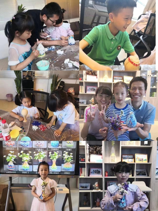 在儿童节来临之际,激发“程二代”的创新精神和实践精神,化学化工学院于5月28日上午开展了“科技创新向未来”——亲子马赛克手工艺术花瓶DIY活动。活动场面热闹非凡,学院的“程二代”们争先恐后地表达自己的创作思路,迫不及待地付诸行动,涂胶水,铺马赛克,填缝,一环扣一环,个个都表现出色,做出了自己心目中最好看的图案。
