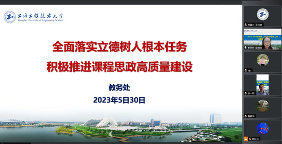 教务处副处长金晓怡作了题为《全面落实立德树人根本任务 积极推进课程思政高质量建设》的报告,从课程思政的含义、学校课程思政的整体情况、下一步工作计划三个方面,结合教学过程中的实际案例,生动地向督导专家介绍将思政教育与思政元素融入人才培养目标、课程体系、课程标准、教学过程和教学评价的重要性。