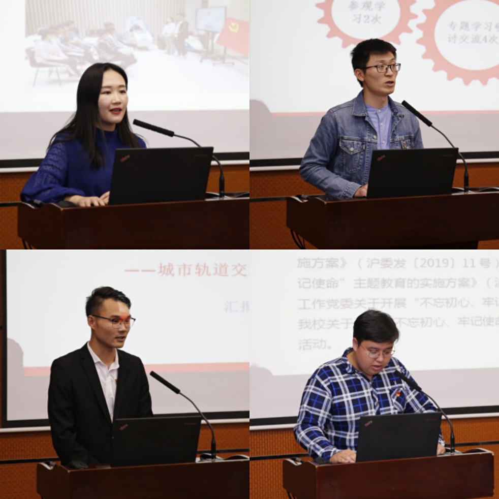 机械与汽车工程学院党委车迷俱乐部党支部书记吕悦、汽车工程专业本科生党支部书记苏鹏源,城市轨道交通学院党委研究生第一党支部书记孙兵,社会科学学部党总支学生第二党支部书记木合甫力·木塔力甫分别以《汽车中国,党员先行》《志愿服务传帮带,发挥作用促学风》《重环保、爱校园,垃圾分类我先行》《党员帮扶暖人心、民族共进促和谐》为题作了支部主题党日分享。