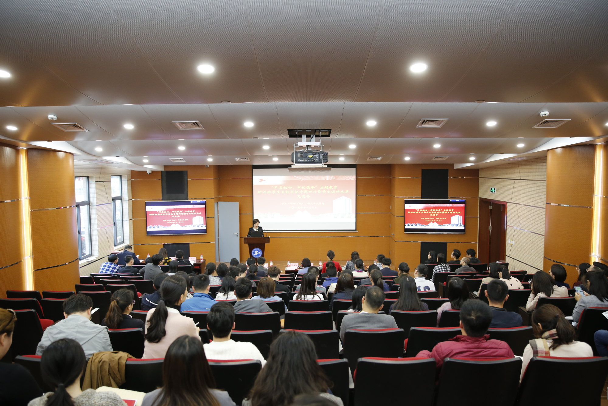 11月8日下午,学校在航飞楼一楼报告厅举办“不忘初心、牢记使命”主题教育学生支部书记专题研讨暨学生调研成果交流会。校党委副书记、副校长朱晓青,学生工作部(处)长、研究生工作部长朱蓓,党委组织部副部长张可菡,教务处副处长刘珂艳,研究生处副处长李路,国际交流处副处长肖谦,后勤实业发展中心副主任徐益,体育部副主任葛耀君,国际教育学院杨颖老师出席了会议,参加会议的还有各学院党委(党总支)副书记、全体学生党支部书记、辅导员。交流会由学生工作部(处)长、研究生工作部长朱蓓主持。