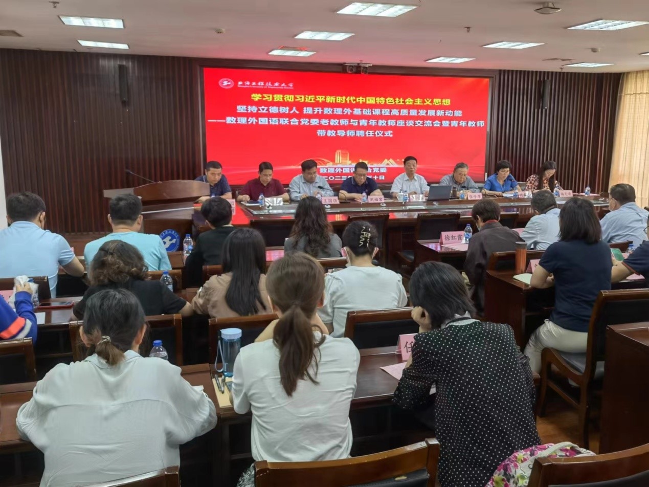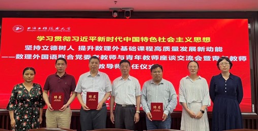 为了提升数理外基础课程教学质量,把主题教育成果转化为推进高质量发展的磅礴动力。5月30日,数理外国语联合党委在行政楼506会议室,围绕“坚持立德树人,提升数理外基础课程高质量发展新动能”主题,开展老教师与青年教师座谈交流会暨青年教师带教导师聘任仪式。上海工程技术大学审核评估顾问、老教授协会副会长、关工委副主任陈力华教授,联合党委关工委副主任张子厚教授,数理与统计学院、外国语学院全体班子成员,学院老干部、老教授、老教师代表、近几年新进教师参加会议。会议由数理外国语联合党委书记钱慧敏主持。