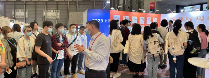 与此同时,管理学院主动出击、提前谋划,对接大学生就业与养老服务行业的人才需求,组织专业大三学生参加了展馆内“才聚申城、筑梦养老”专场招聘会。受上海市养老服务发展中心邀请,专业学生与上海市第一社会福利院院长、上海首位作为重点人才引进落户的养老护理员等领域高端人才进行了面对面交流,行业专家们分享自身多年的从业经验和对行业发展的独到见解,对学生们的职业规划和发展方向提出了宝贵的建议。招聘会上,学生们不仅仔细了解了养老相关企业的人才需求和招聘要求,还主动向企业递出了个人简历,在双选的过程中充分展示专业能力和学习成果,表达了对毕业后加入养老服务行业的热情和期望。