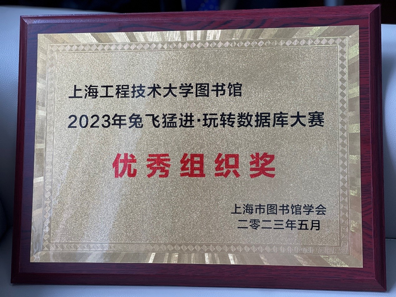 近日,由上海市图书馆学会阅读推广委员会主办、北京智信数图公司协办的“兔飞猛进•玩转数据库大赛”活动圆满落幕,我校管理学院邹晓瑜、化工学院彭丽菊、刘甫磊3位同学获得“数据库新秀”称号,我校图书馆获得优秀组织奖。
