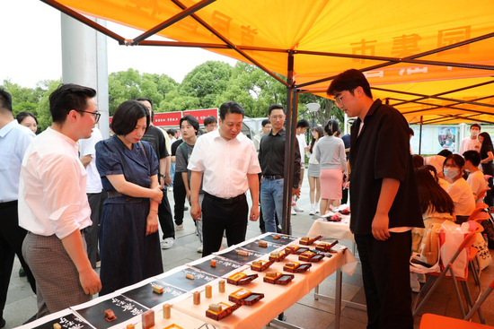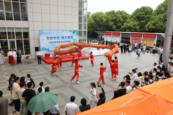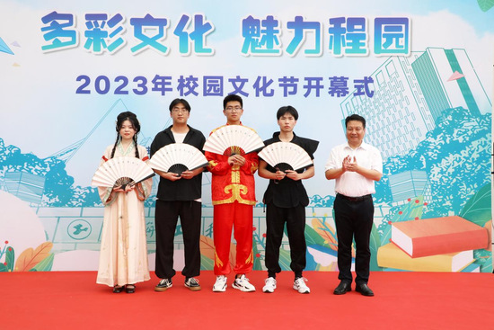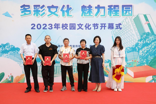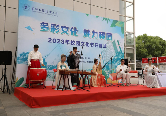 6月1日中午,由党委宣传部、团委主办的“多彩文化魅力程园”2023年校园文化节在第一食堂广场开幕。校党委常委、宣传部部长徐阳,松江区委宣传部调研员蔡霞,宣传部副部长、文明办主任祝玥,团委书记陈翼然,非物质文化遗产传承人代表和我校师生代表等出席活动。