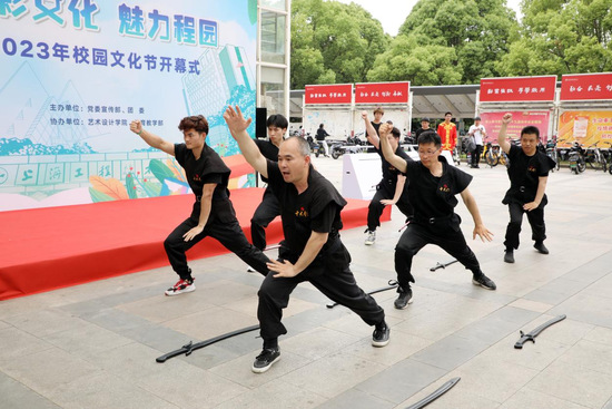 非物质文化遗产传承人余江老师等带来的心意拳表演,在阵阵喝彩声中,让开幕式现场气氛不断掀起高潮。心意拳是国家级非物质文化遗产,不仅在上海具有较大影响力,同时在日本、韩国、法国等国家也都有传承人和众多传习者。通过在校园文化节上的展示,让更多同学了解和喜爱中国传统文化。