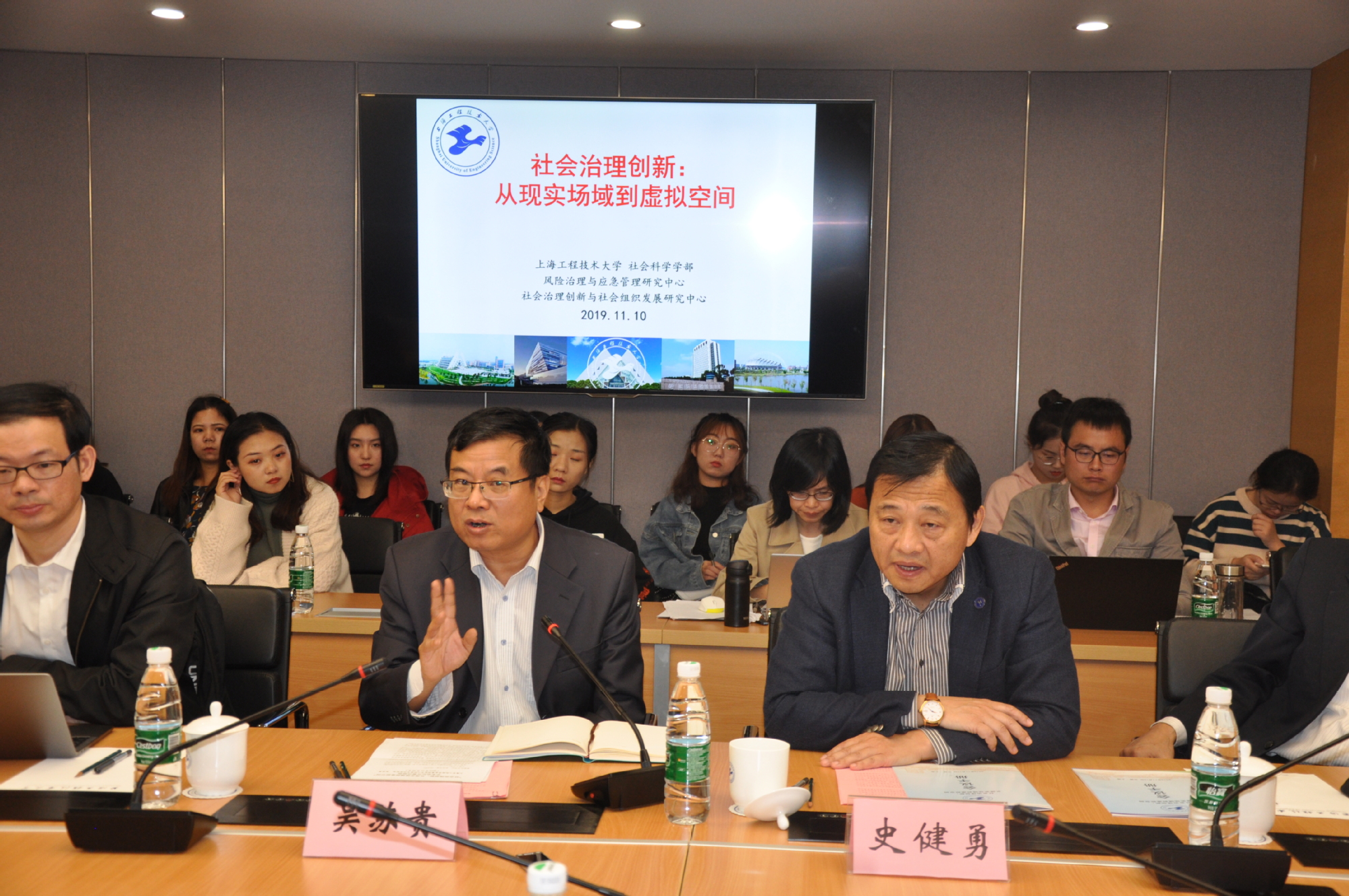 11月10日,由上海工程技术大学社会科学学院、风险治理与应急管理研究中心以及社会治理创新与社会组织发展研究中心主办的“社会治理创新:从现实场域到虚拟空间”学术会议在我校仙霞校区召开。本次会议恰逢全党的十九届四中全会刚刚结束和学习“不忘初心、牢记使命”主题教育进行之际,围绕社会治理的理论梳理、治理实践的机制探讨、网络治理的实践困境等重要议题展开学术交流与讨论。上海工程技术大学党委副书记史健勇、上海市人民政府发展研究中心社会文化处处长吴苏贵出席了会议开幕式并致辞,上海工程技术大学社会科学学院院长刘志欣教授主持会议。