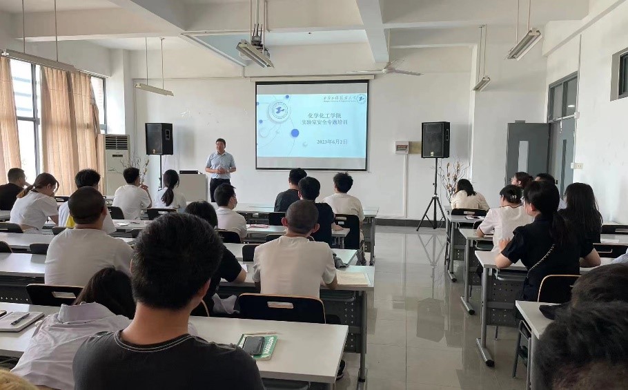 为进一步强化师生实验室安全意识,规范设备正确操作,营造实验室安全文化氛围,6月2日,化学化工学院在实训楼4418召开实验室安全专题培训会,会议由中心实验室主任包一鸣主持,副院长王润锴、各实验室学生负责人参加培训。