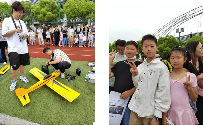 活动在纸飞机拉烟飞行表演(彩色烟雾,冷烟花)中拉开了帷幕,彩色的烟雾瞬间就吸引住了小朋友们的注意力,孩子们的欢呼声不绝于耳。紧接着,3D轻木飘带特技花式飞行表演开始了,在飞手哥哥的耐心细致讲解中,孩子们了解了飞机的基本结构,飞机的机动操纵,飞行的起落航线等航空科普知识。在表演的间隙,孩子们认真填写科普知识答题卡,还不时的和周围的小朋友讨论,交到了新朋友,学到了新知识。塞斯纳狗斗表演和穿越机飞行演示把活动带向高潮,现场时时响起掌声和喝彩声。最后在大型汽油机的轰鸣声中,小朋友们感受到了飞行的震撼和魅力,他们的笑脸被大疆无人机及时捕捉到,飞手哥哥制作了活动视频为孩子们留下这段美好的回忆。