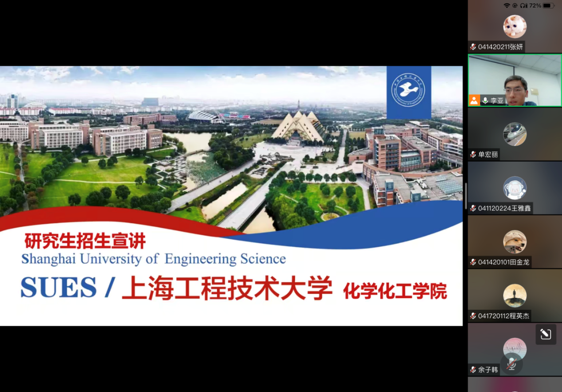 在交流环节中,李亚教授对参会同学提出的问题给予了详细解答,留下联系方式,方便有兴趣的同学继续深入了解学院情况,并欢迎同学们报考上海工程技术大学化学化工学院。