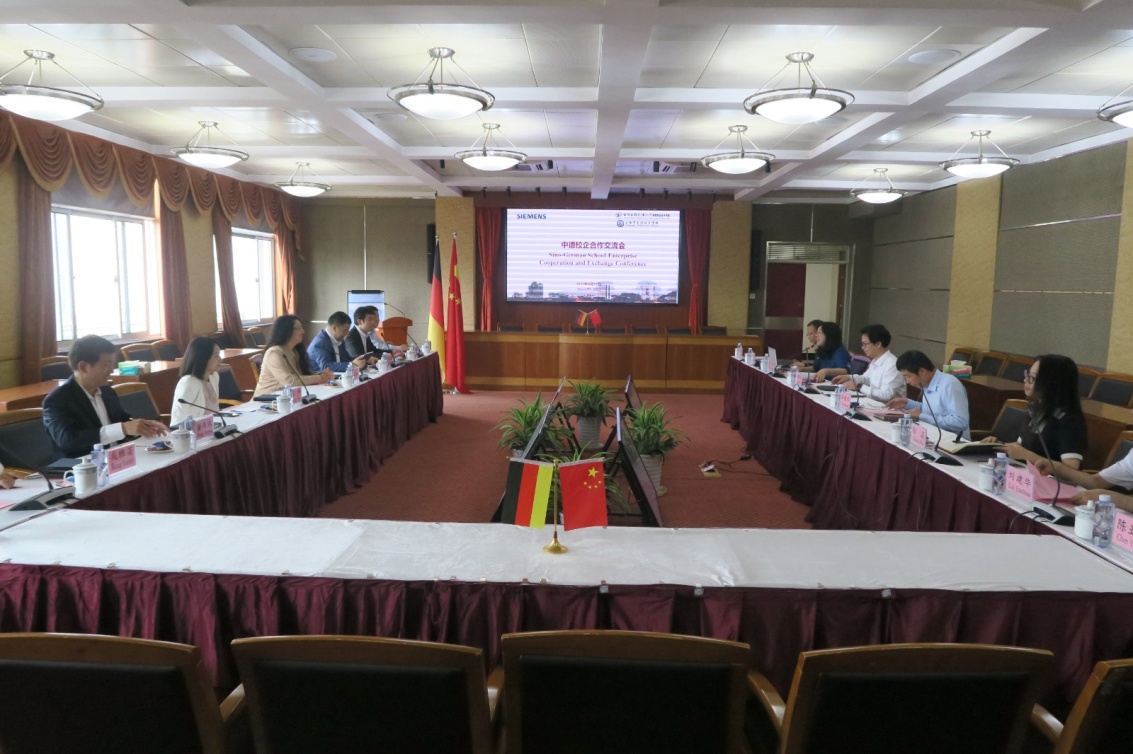 为贯彻落实《职业教育法》《教育部等八部门关于加快和扩大新时代教育对外开放的意见》精神,丰富中德职教合作,推动产教深度融合,6月15日,高职学院、高级技校与西门子(中国)有限公司举办的“中德校企合作交流会”在综合楼举行。西门子公司DI客户服务部首席执行官Adragna Margherita、西门子(中国)有限公司DI集团副总裁杨大汉、集团创新与人才发展总经理元娜、集团华东区工业客户服务总经理温艳波等7位企业代表,高职学院、高级技校院校长郑树彬、副院校长朱建军、机电工程系主任张蕊、副主任刘建华及学院校相关职能部门共8位代表参会,会议由副院校长肖谦主持。