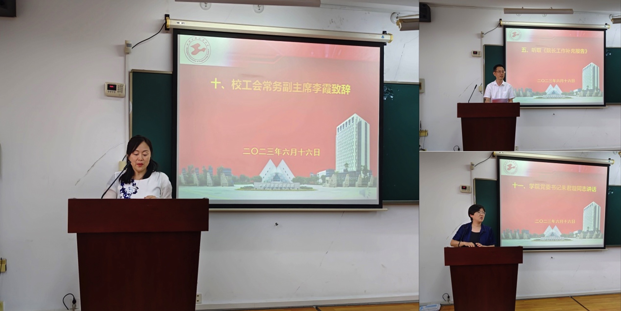 校工会常务副主席李霞同志致辞,向会议的圆满召开表示祝贺并对学院提出新的希望和寄语。院党委书记朱君璇号召全体教职工深入开展主题教育,学习贯彻习近平新时代中国特色社会主义思想,立足“两个大局”,胸怀“国之大者”,开创学院高质量发展新局面!