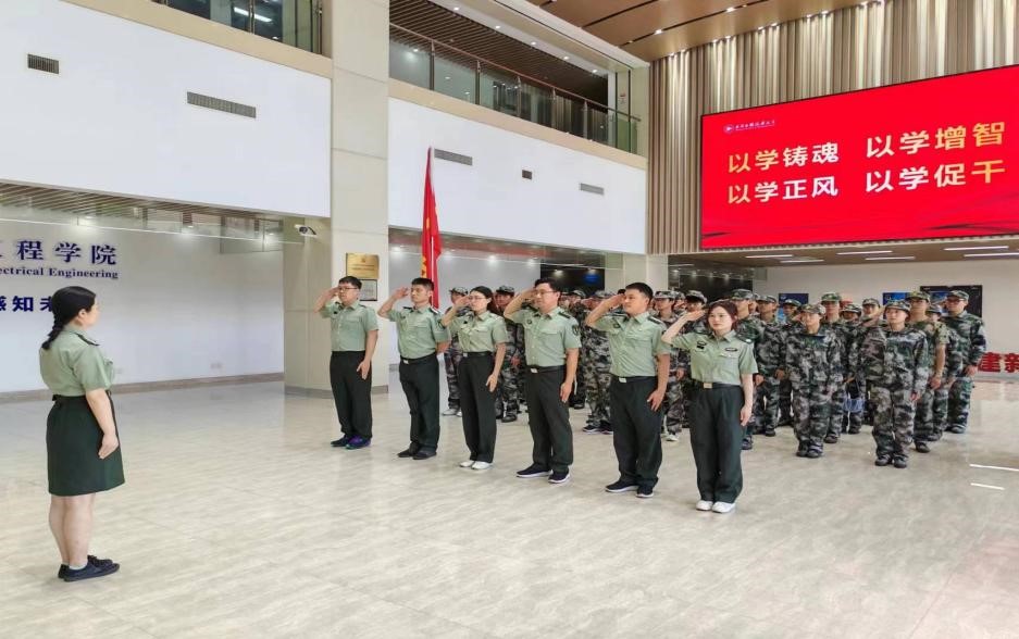 赵梦影宣布军训开训。学院各排将会进一步组织召开动员大会,引导同学提高政治站位,确保军训工作安全、顺利进行。希望2023级新生们通过军训锻炼强健的体魄,磨炼顽强的意志,培养坚韧不拔的毅力,为今后的学习和生活打下坚实的基础。
