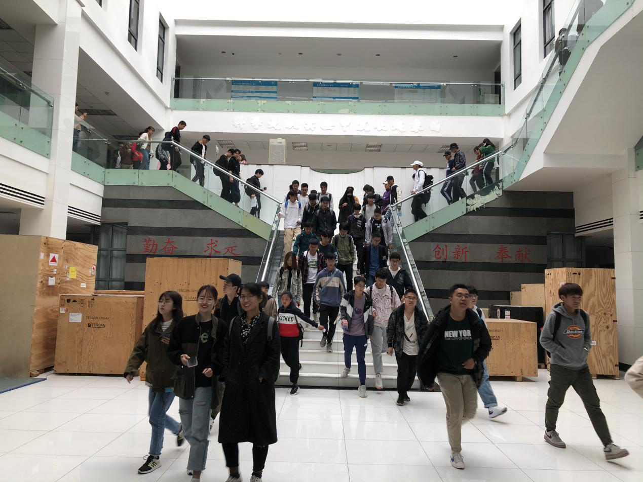 为使广大师生树立“闻警即动”的逃生意识,掌握应急疏散的程序和方法,切实提高师生员工在火灾等紧急情况下的自救互救能力,根据学校保卫处部署,数理与统计学院在实训二号楼组织了本年度第二次安全逃生疏散演练。