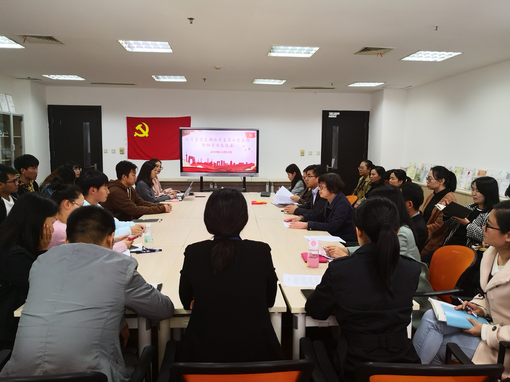 管理学院倡导教工支部与学生支部结对共建,共促学习。11月12日下午,管理学院工商系教工党支部与学生第二党支部在行政楼812会议室开展了一场联合组织学习交流会,主题是学习十九届四中全会会议精神和第二届中国国际进口博览会精神,本次会议由教工支部书记梁鑫同志主持。