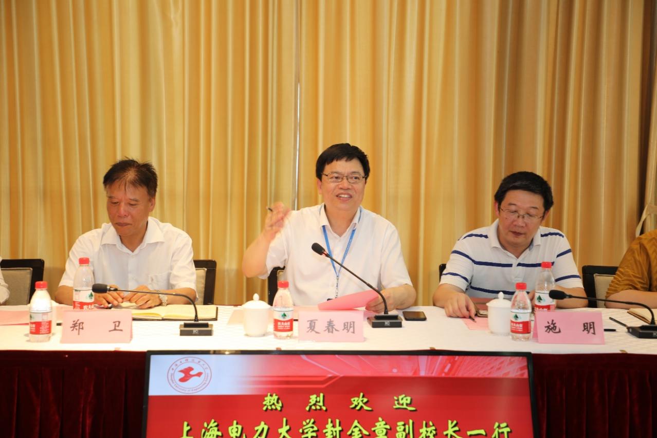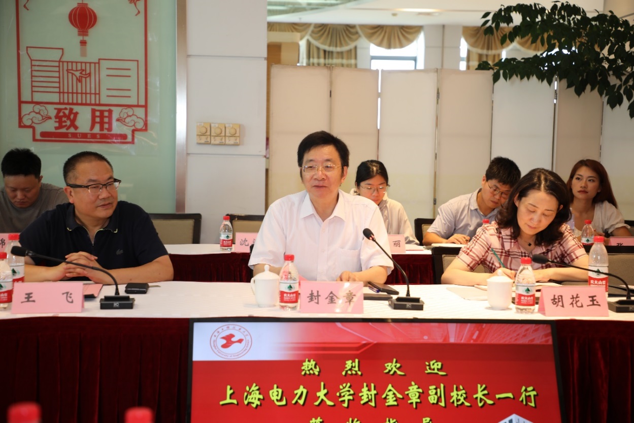为加强合作交流,促进共同发展,6月28日下午,上海电力大学副校长封金章携相关职能部门负责人来校开展主题教育学习研讨,我校副校长夏春明热情接待了封金章副校长一行。校办、财务处、基建处、后勤实业发展中心等部门参与调研交流。