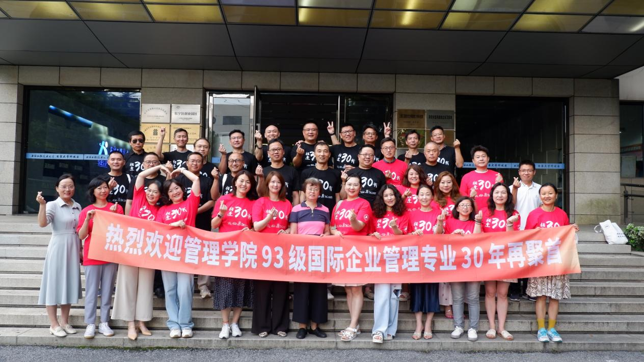 盛夏酷暑,挡不住校友对母校的思念。7月1日,管理学院93级国际企业管理专业31931班和31932班校友集体返校,管理学院党委书记周洁、党委副书记程玉莲、校办副主任范榕、对外联络办校友发展与基金管理科科长熊思奇、管理学院校友工作联系教师童为光等一行亲切接待了校友。