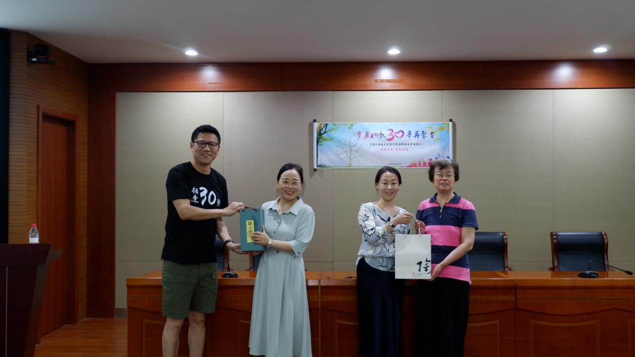 两个班的校友集体向学院捐赠纪念品,寓意93级国际管理专业校友之间的感情不散,祝愿母校砥砺创新、和谐发展,祝愿学弟学妹们未来有坦途,心中繁花似锦。