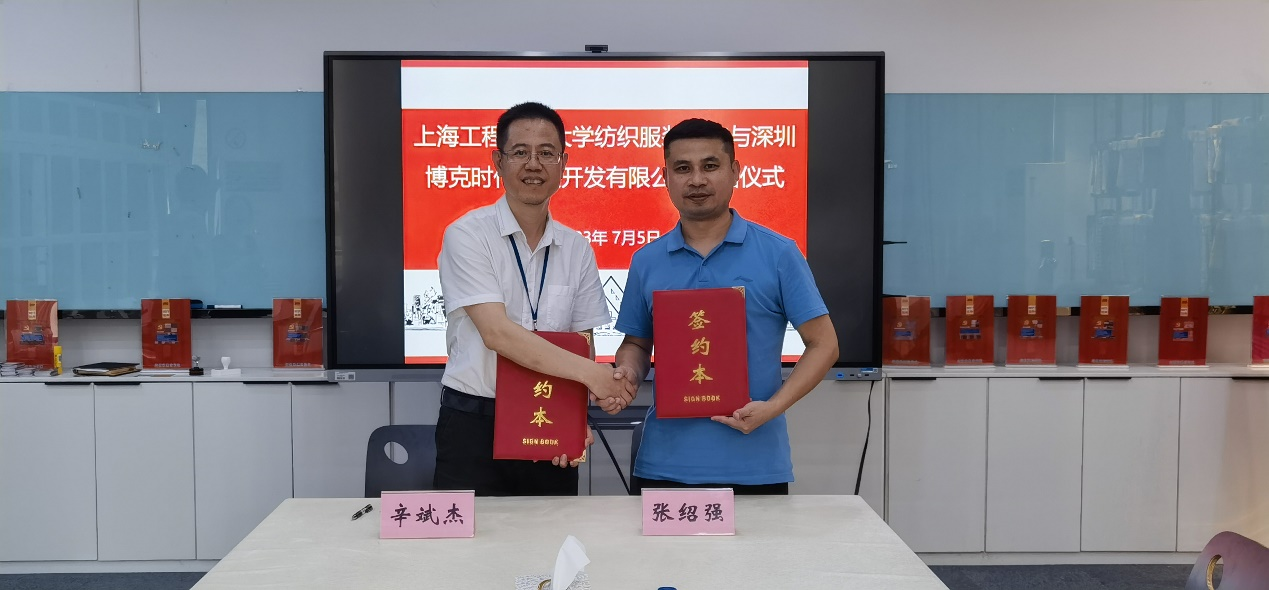 7月5日下午,纺织服装学院在艺术楼与深圳博克时代科技开发有限公司举行捐赠签约仪式。深圳博克时代科技开发有限公司副总经理张绍强、技术总监钟景才,纺织服装学院院长辛斌杰,副院长李春晓、曲洪建和教师代表出席了捐赠仪式,会议由辛斌杰院长主持。