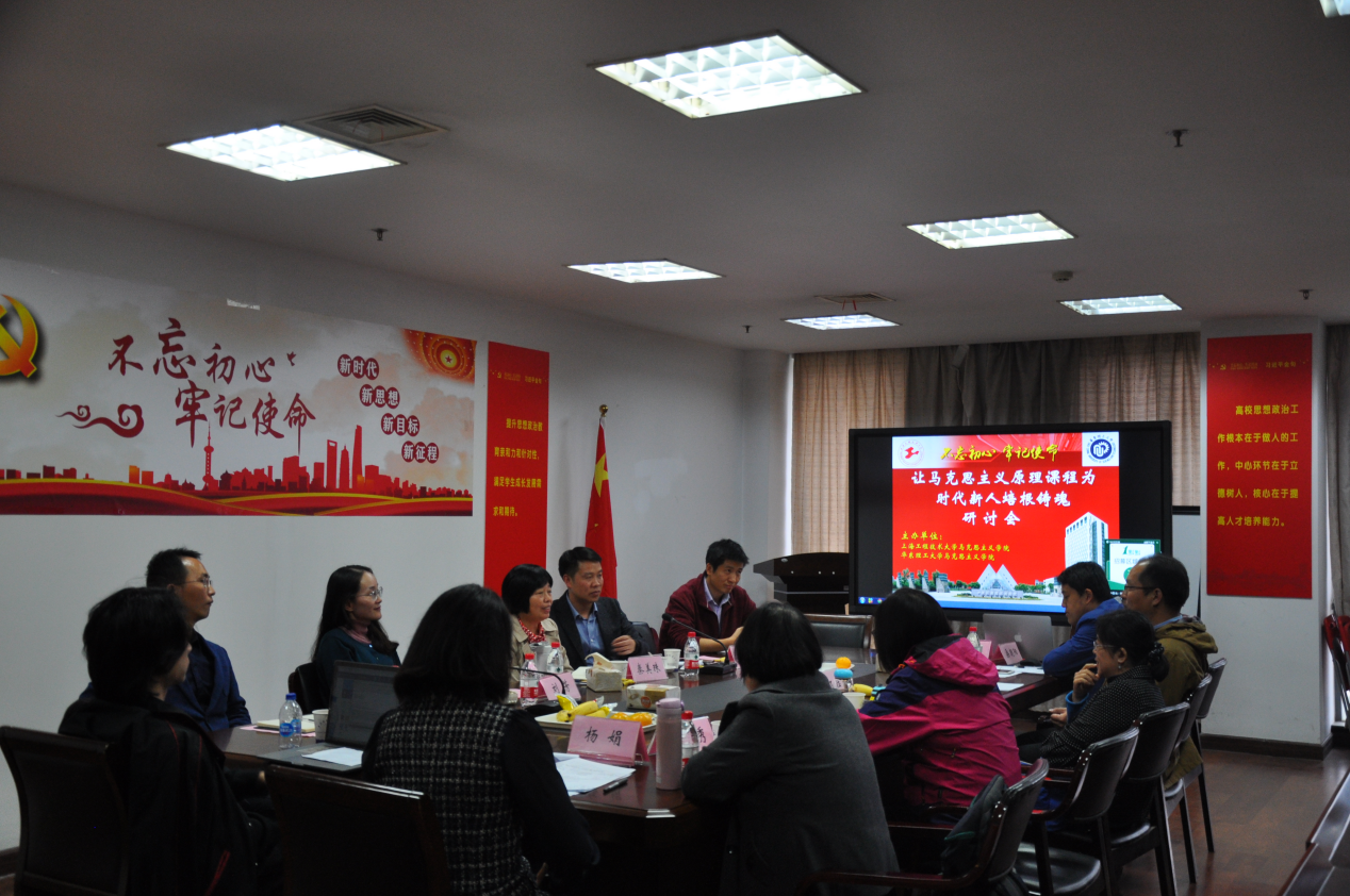 为深入学习贯彻习近平总书记在全国高校思想政治工作会议重要讲话精神,结合“不忘初心、牢记使命”主题教育要求,落实校党委的工作部署,11月13日,马克思主义学院(马克思主义原理教研室)与华东理工大学马克思主义学院在学校行政楼906会议室联合举办了“让马克思主义原理课程为时代新人培根铸魂”的主题研讨会。