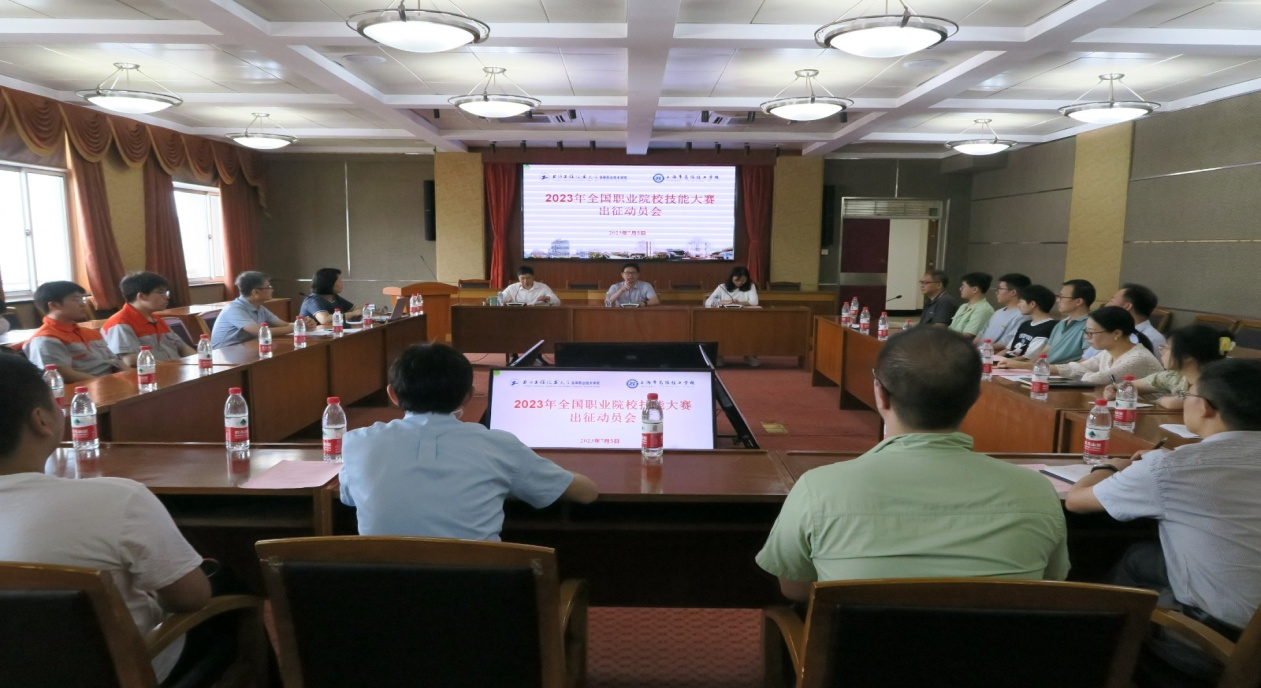7月5日,高职学院、高级技校2023年全国职业院校技能大赛出征动员大会在综合楼九楼第二报告厅召开,院校长郑树彬,副院校长朱建军、肖谦,参赛教练及选手,机电工程系、制造工程系主任及分管竞赛副主任,教务科科长参加会议。会议由朱建军副院校长主持。