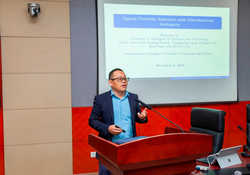 11月13日下午,上海理工大学屈绍建教授应高职学院邀请于教学楼502室为广大师生作博学论坛“Sparse Portfolio Selection with distributional ambiguity”学术报告,本次报告由朱建军副院长主持。