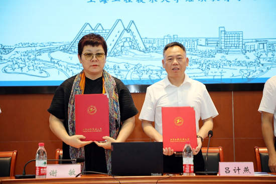 开班仪式上,谢敏院长和吕计燕院长分别代表上海工程大学和三门技师学院续签了“校际合作协议”。