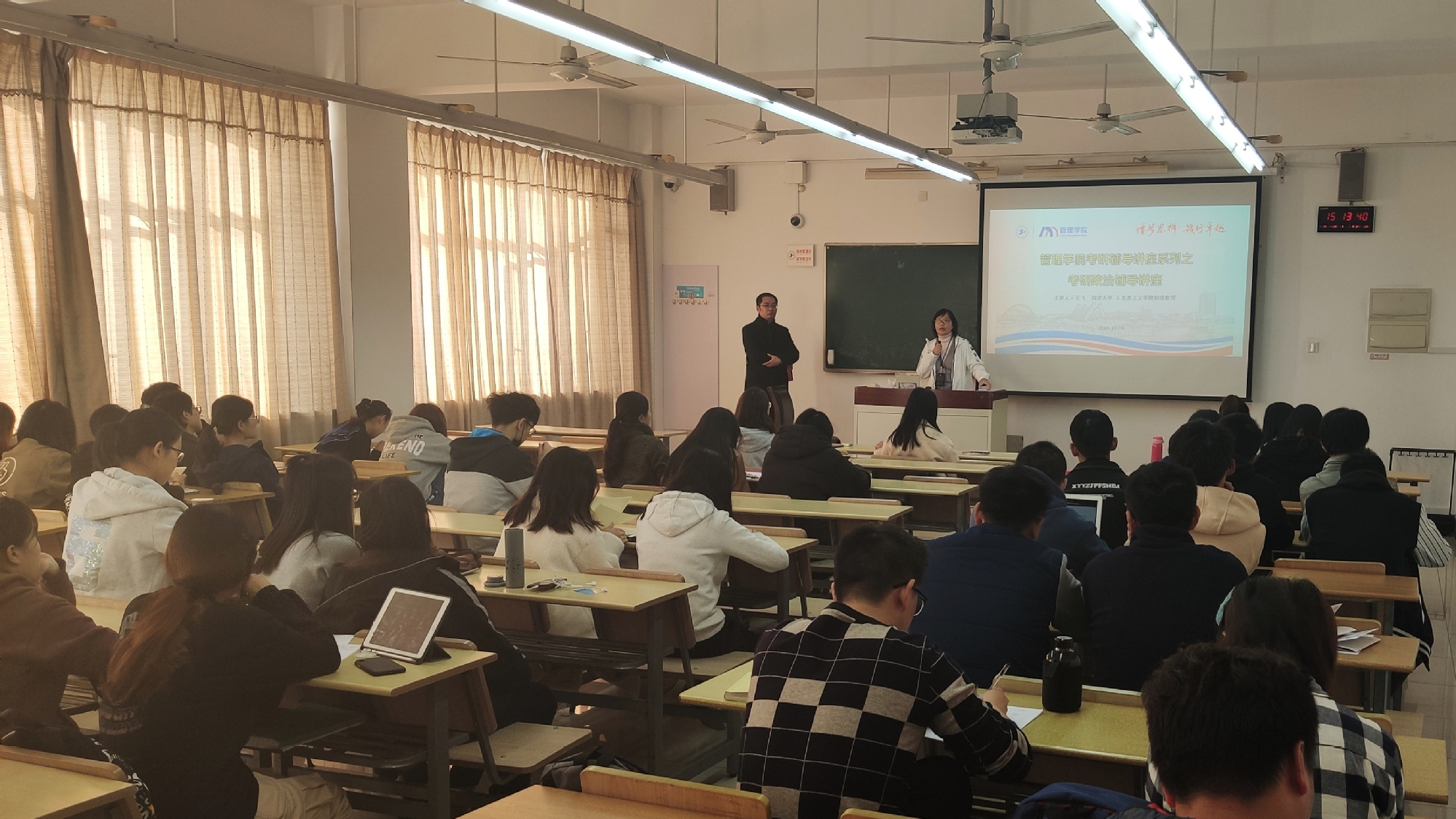在考研数学讲座中,老师为同学们详细分析考研数学近五年考情。结合各个学科特点提供不同的复习策略,引导同学们制定有针对性的复习计划,结合经典题型点思路、讲方法。考研政治冲刺讲座中老师结合当前政治形势,紧扣最新政治考试大纲,为同学们进行不同模块的知识点串讲,分享复习策略。