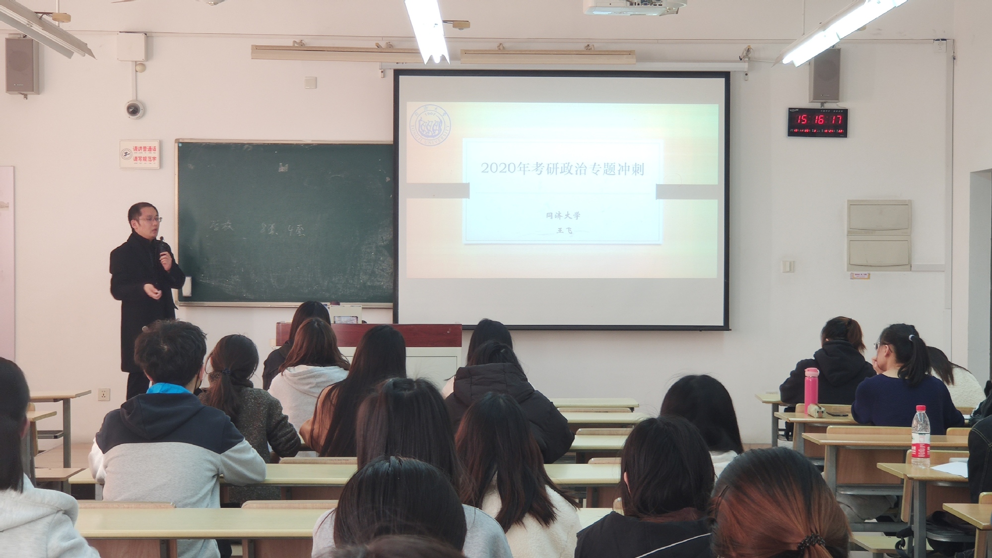 为深入开展“不忘初心、牢记使命”主题教育,关心学生的学业,满足学生的诉求,让考研的同学系统复习、科学备考,11月20日下午,由管理学院举办的2020年考研冲刺辅导系列讲座于教学楼E-303如期开讲。此系列讲座专门邀请同济大学数学系博士贺金陵,同济大学马克思主义学院助理教授王飞,结合最新考试大纲为程园考研军串讲知识点,分享紧贴考情的复习方法。管理学院党委副书记程玉莲在讲座前做考研动员,了解同学们的考研动向,为考研同学加油鼓劲。