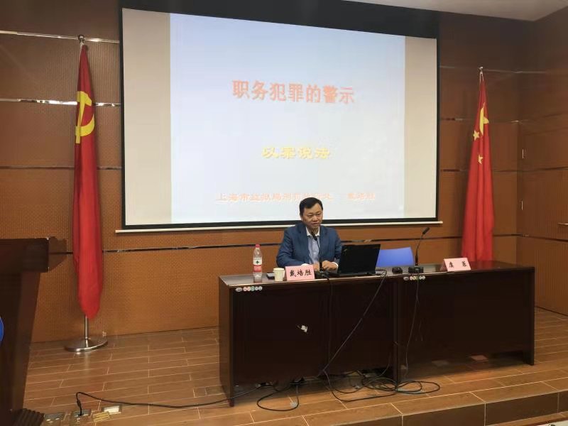 本次报告的主题为《职务犯罪的警示》,戴处长的报告分为三个部分。首先对上海市监狱的基本情况作了介绍,其次选用了多个发生在高校的职务犯罪案例进行深入分析,查摆案例发生的根本原因;最后再明确指出职务犯罪的危害所在。戴处长总结,作为党的干部一是要夯实思想的堤坝不滑坡,加强学习;二是要拧紧欲望的开关不松懈,警钟长鸣;三是要扎牢作风的藩篱不侥幸,常怀律己之心;四是要严守党的纪律规律不逾越,清清白白做人。