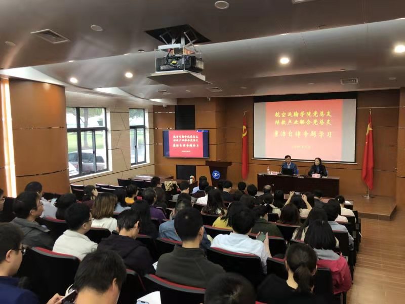 11月22日下午,航飞学院党总支与校继教产业党总支在航飞6109报告厅共同开展主题教育廉洁自律专题集中联组学习。本次学习邀请到了中国监狱学会刑罚执行专业委员会委员、上海监狱学会常务理事、 上海市监狱管理局刑罚执行处处长戴培胜来院授课,报告由航空运输学院党总支虞蓉主持。