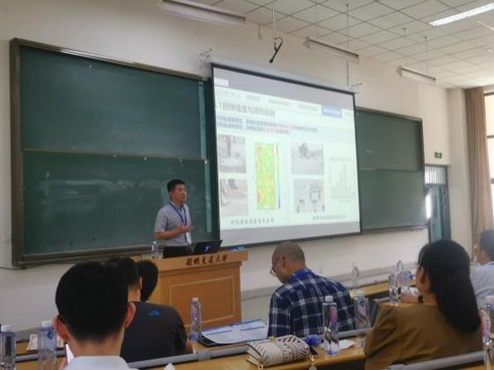 骨干教师路宏遥做了《服役状态下轨道板性能演变精细化分析》主题报告,与各高校专家学者就高速铁路科学养护维修进行了深入探讨。