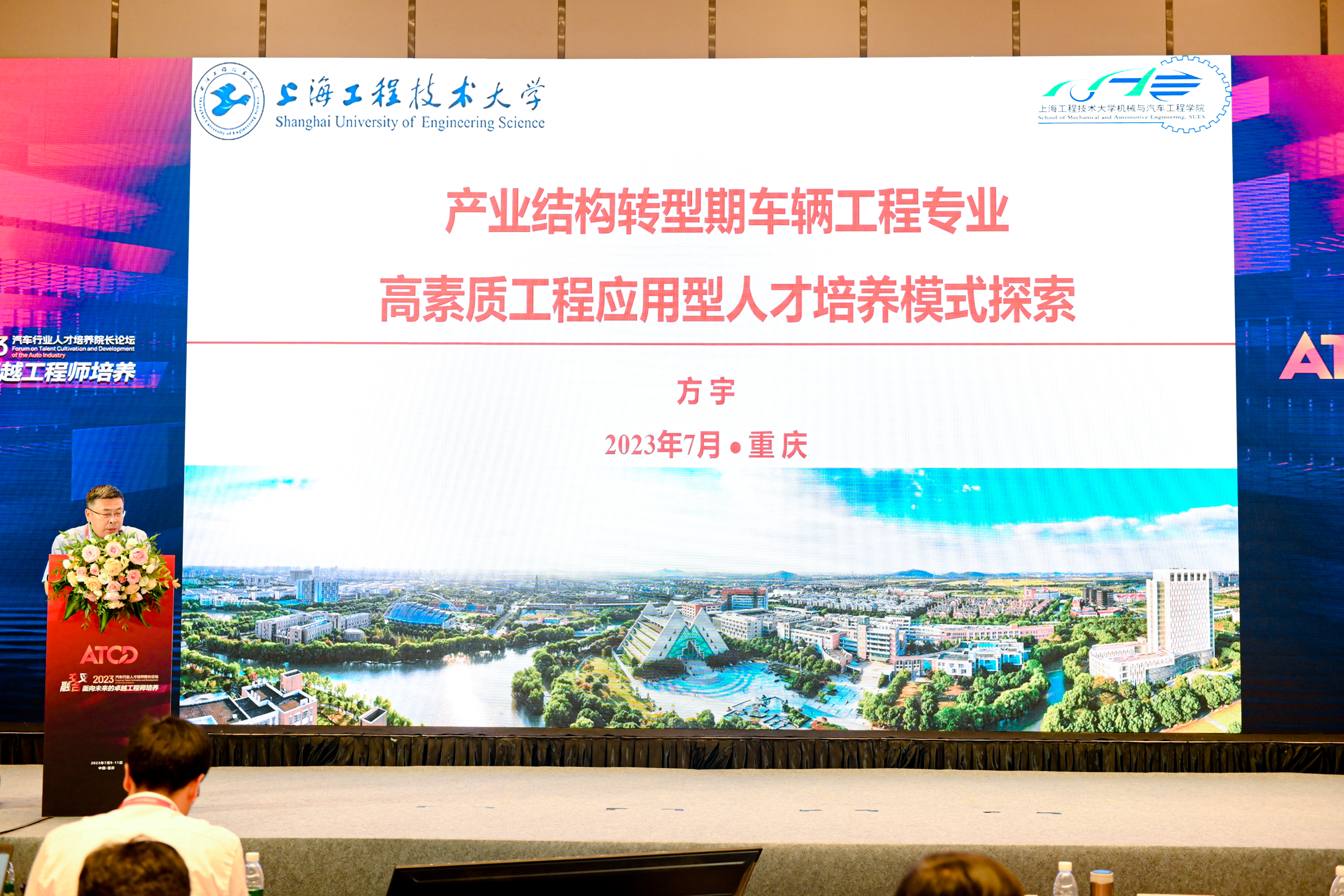 机械与汽车工程学院院长方宇教授应邀在大会上作题为“产业结构转型期车辆工程专业高素质工程应用型人才培养模式探索”的主旨报告。详实介绍了学校、学院的基本情况,从探索人才培养服务国家和区域产业经济的角度,分享了在汽车产业重构转型期,学院车辆工程专业打造产业牵引、学科交融、校企协同的应用型创新人才培养体系的相关经验。向国内高校展示了我校在推进车辆工程专业建设、人才培养、教育教学改革等方面开展的工作和取得的阶段性成果,进一步加强了与其他高校的沟通交流,对学校培养适应汽车产业发展所需的高素质工程应用型人才起到积极的促进作用。