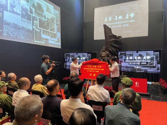 在抗美援朝战争胜利70周年之际, 7月27日,“寻亲 寻根 寻梦”松江区纪念抗美援朝战争胜利70周年专题展暨“为烈士寻亲”项目成果展开幕,活动设计、主旨宣传片制作和展陈搭建由艺术设计学院承担完成。上海市双拥办副主任、市退役军人事务局党组成员、副局长包尔基,松江区委常委、副区长刘福升,区双拥办主任、区退役军人事务局党组书记、局长李肖辉,艺术设计学院党委书记李云先、副书记刘江,市退役军人事务局拥军优抚处副处长钦培坚,区文明办四级调研员蔡霞和抗美援朝老兵代表、抗美援朝烈士家属代表和退役军人志愿者代表参加了活动。