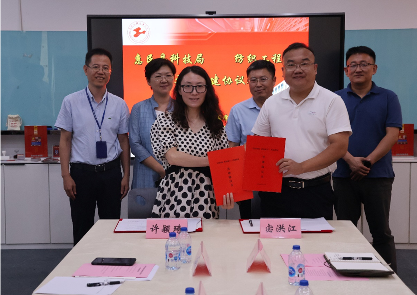 朱君璇对交流团的到来表示热烈的欢迎,表示学院党委全力支持双方开展技术交流合作,协同推动学院技术成果到企业应用,为企业解决实际技术难题,并主动寻找合作项目形成合作机制,不断推进校地合作蓬勃发展。希望双方通过共筑党建基础、共享教育资源、共扬校地文化、共推先进经验,把基层党建工作拓展到双方合作各方面全过程,将联创共建工作作为双方广大党员干部理想信念教育、党性教育、科研交流的互动平台,促进双方党建工作水平整体提档升级,使党建共建转化为助推双方各项事业发展的动能。会上,惠民县科技局与学院纺织工程教工党支部签订党建共建协议。