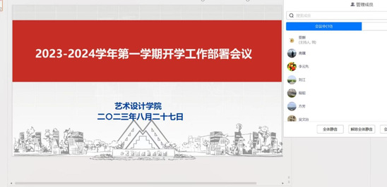 为进一步做好2023-2024学年新学期各项工作,为学院教育教学事业起好步、开好局,8月27日上午,艺术设计学院线上召开了2023-2024学年第一学期开学工作部署会议,学院全体党政班子成员、党政办及相关系室教师出席会议。会议由学院党委副书记、院长高瞩主持。
