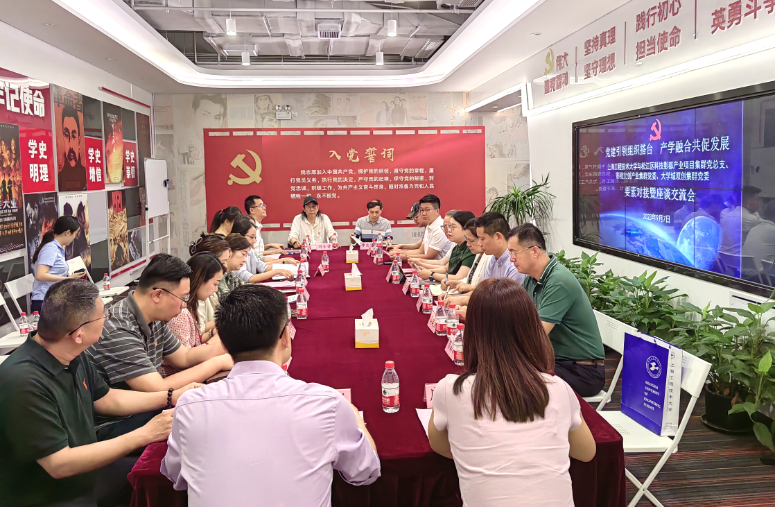 为持续深化党建引领,加强高校与产业集群党建划片联动,推进党建工作与业务工作深度融合,9月7日,艺术设计学院党委书记李云先,院长高瞩,国际创意设计学院院长顾艺,校党委组织部副部长熊伟,艺术学院党委副书记刘江、马建立,副院长吴文治等一行8人来到上海科技影都展示厅开展“党建引领组织搭台 产学融合共促发展”座谈交流会。区社会工作党委相关领导、永丰街道领导和相关同志、松江区产业集群相关企业代表参加交流。