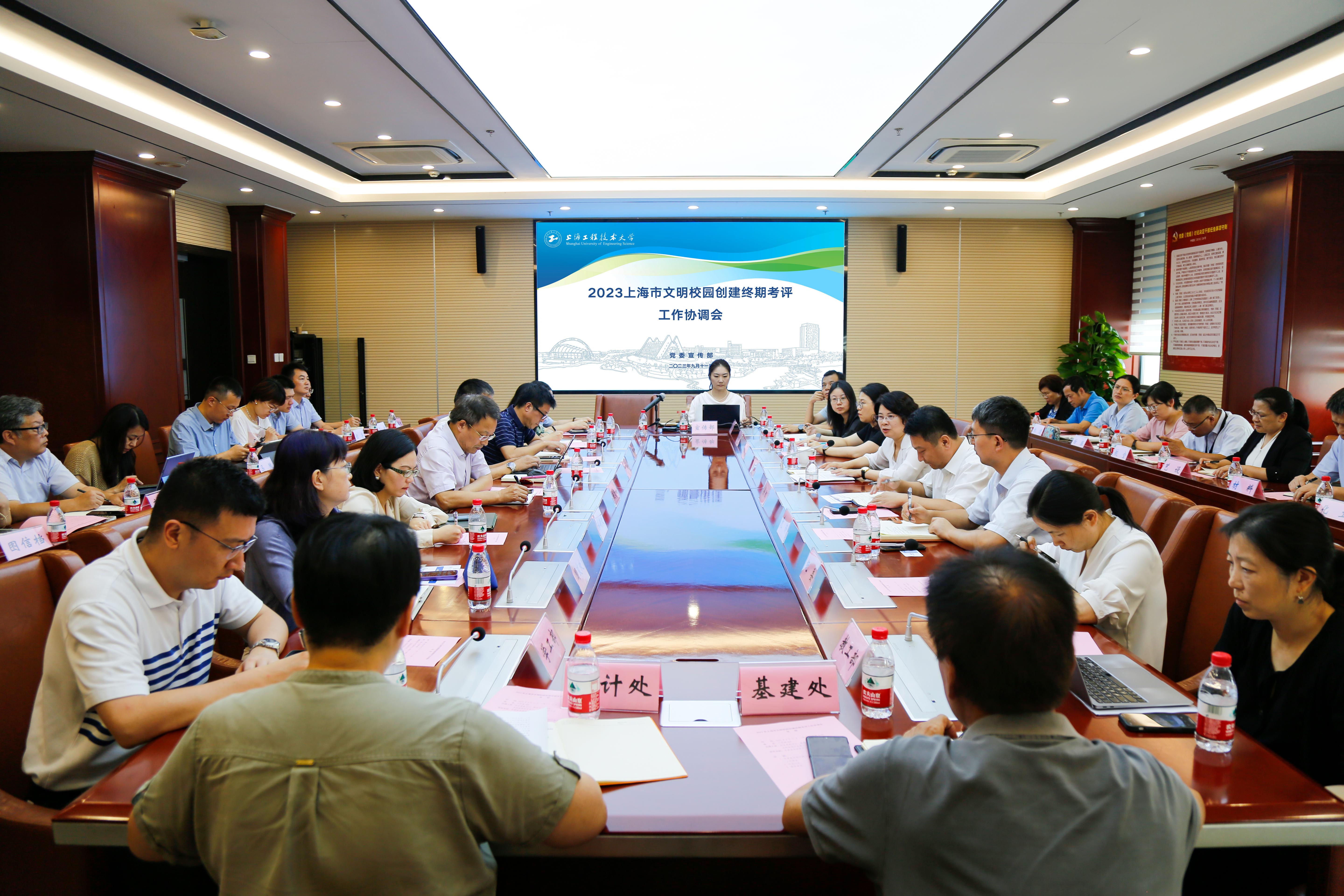 9月11日下午,学校在行政楼406召开上海市文明校园创建终期考评工作协调会。校党委副书记、副校长朱晓青出席,党委宣传部部长徐阳主持会议,各职能部处负责人、二级党组织书记参加会议。