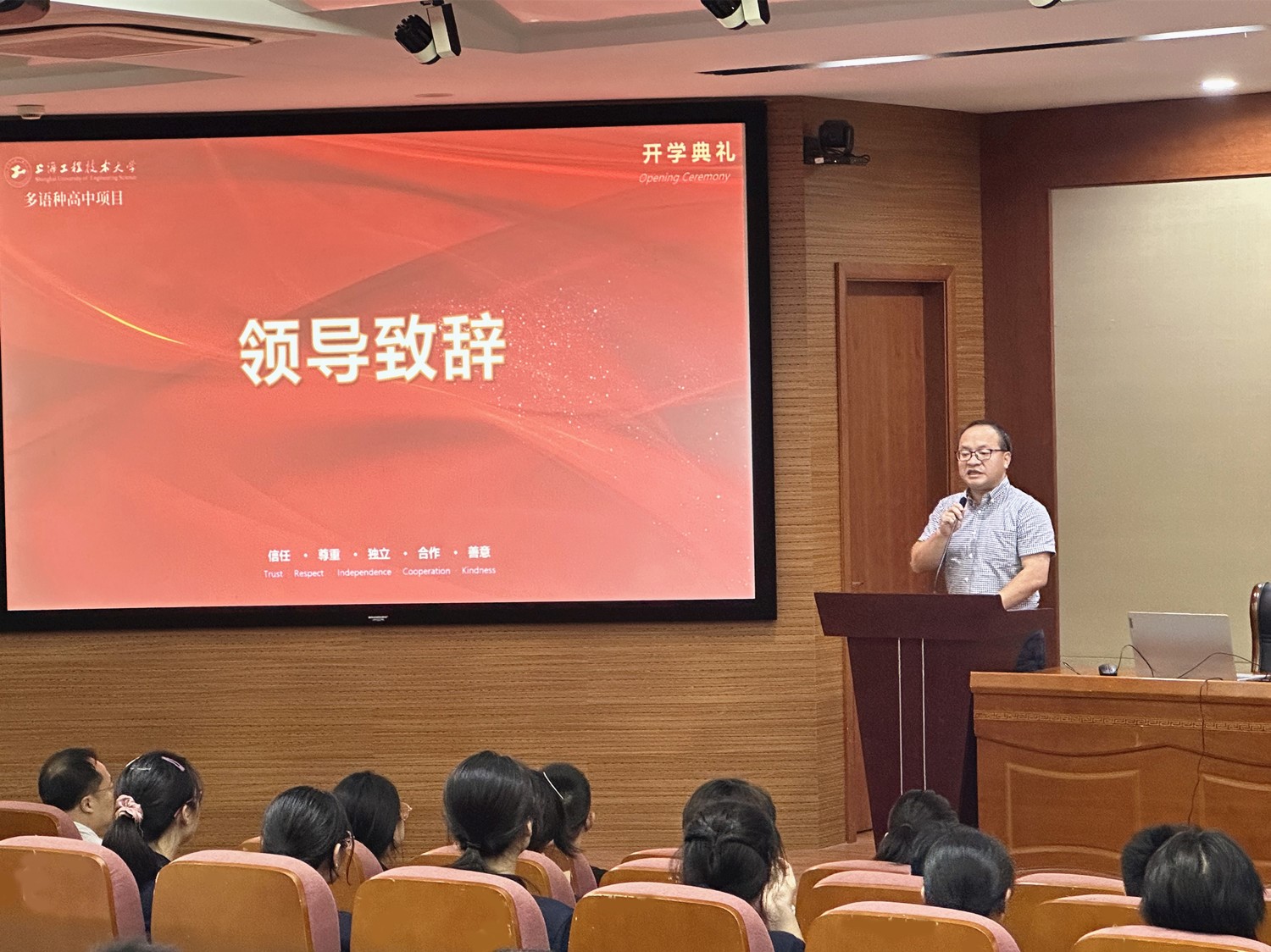 受谢敏院长委托,吴刚副院长代表学院致辞,鼓励学生们在新的学期,面对学习和生活,要拥有“乱云飞渡仍从容”的自信,要怀揣“无限风光在险峰”的决心,要有“吹尽狂沙始到金”的坚持。以青春之我、奋斗之我,奏响出一曲不同凡响、激情豪迈的青春之歌!多语种高中项目升学规划总负责叶宇宏老师为同学们带来开学寄语,鼓励大家多与人交往、分享,始终拥有探索未知领域的勇气与动力,以积极的心态、强烈的学习意愿及良好的情商面对这个世界。