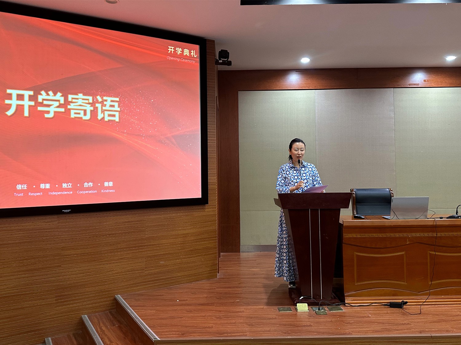 此次开学典礼是项目教育的重要组成部分,激励全体师生在新学期中以积极的心态、良好的行为全身心地投入到学习和生活中。在“信任、尊重、独立、合作和善意”的氛围中成为理想远大、热爱祖国、追求真理、勇于创新、视野开阔、全面发展的人。