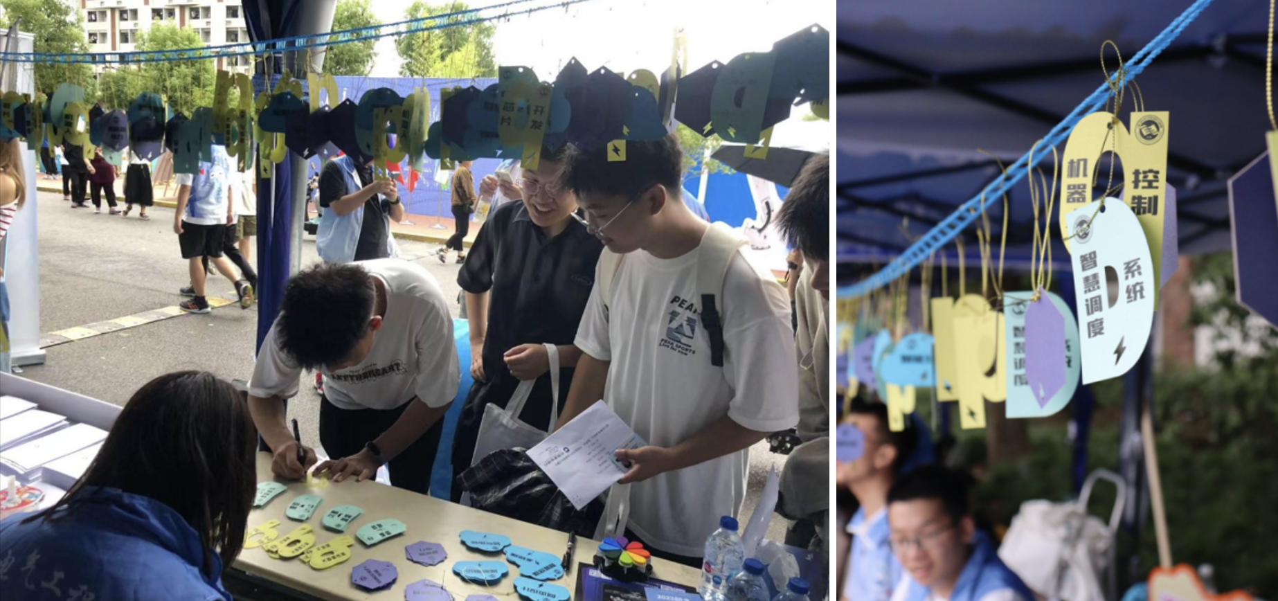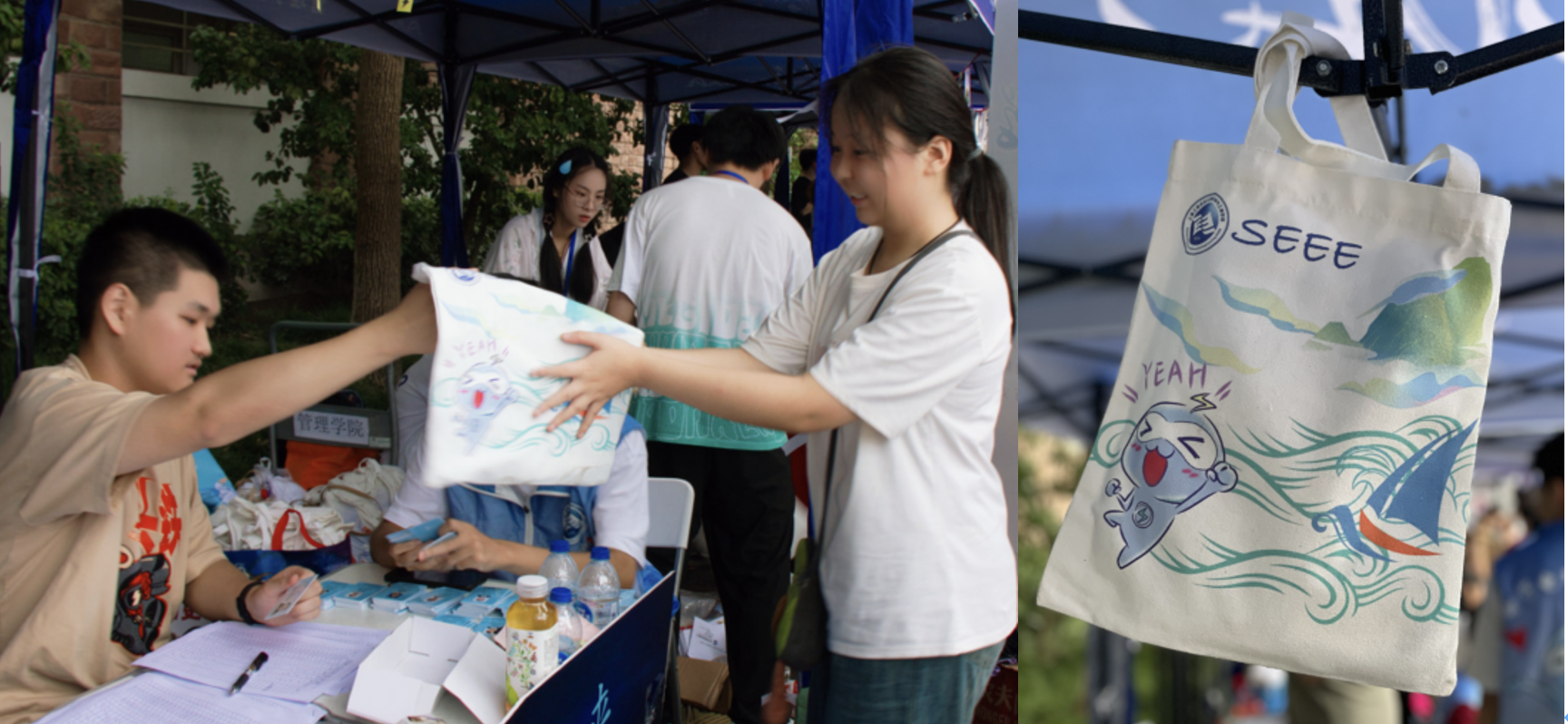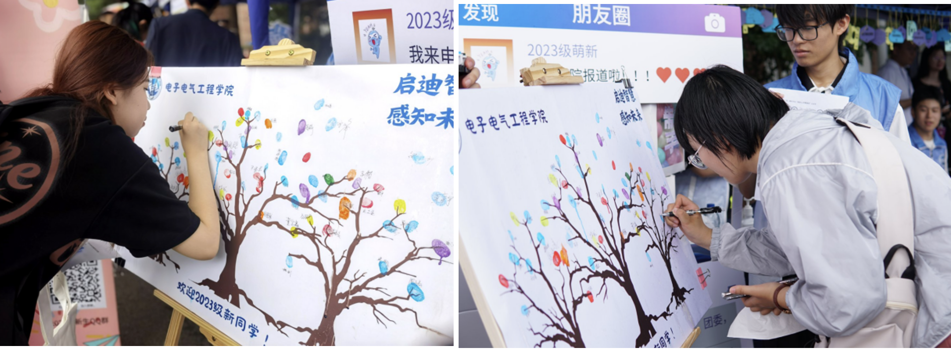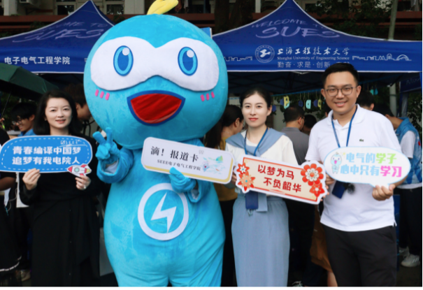 为了让学生更好的了解专业特色,学院在迎新点上融合了诸多电气学院的元素。全场最活泼的吉祥物“小电”是新生们拍照合影的首选。让新生在带有专业名称的意向牌上写下对未来四年学习的期许。并在现场体验互动“iclass”平台,将自己的祝福弹幕投屏,“青春电气、大树成林”23级的萌新在“电院树”摁下手印,留下属于自己的开学印记。“相知陪伴帆布袋”“温暖常在校园卡套”“开启未来钥匙扣”和“满心祝福明信片”满满的大礼包都是对新生满满的爱。