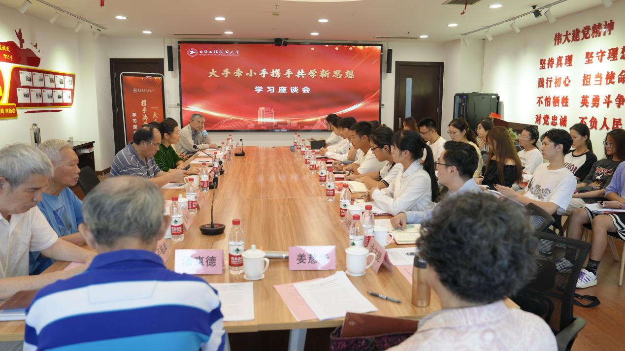 9月15日下午,校党委离退休工作部(退休工作处)、校关工委、校团委、纺织服装学院关工委在松江校区行政楼512会议室联合举办2023年“大手牵小手,携手共学新思想”学习座谈会。离退休工作部邀请了校老教授协会会长、校关工委副主任夏斯云,校关工委委员张健明、卢柏龙,二级学院关工委委员潘惠德、张海成以及柳如荣、汤万庆、赵卫东、姜慈华等“五老”精英代表出席座谈会,校团委副书记刘晓明与30余名团学骨干参加座谈会。座谈会由党委离退休工作部副部长张漪主持。