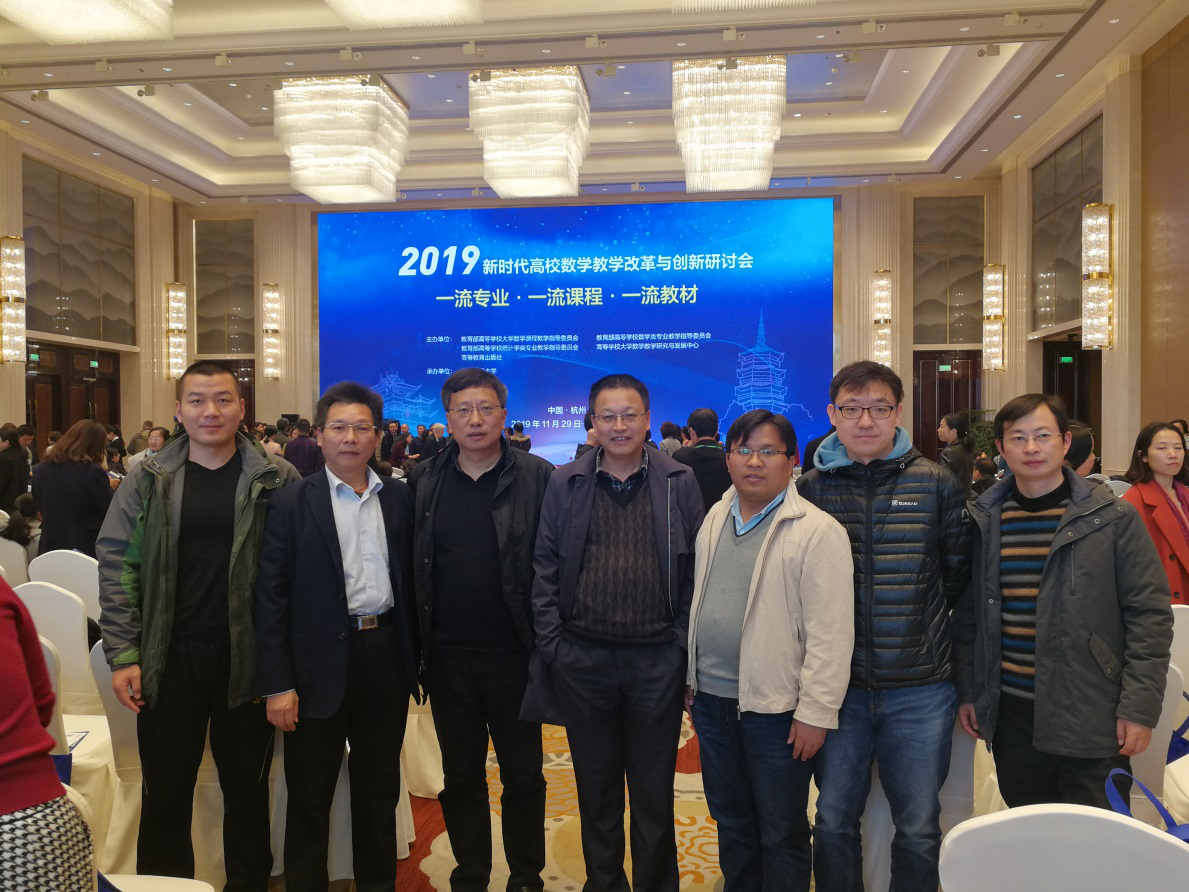 11月29日-12 月1日,“2019新时代高校数学教学改革与创新研讨会”在浙江杭州召开。该研讨会由教育部高等学校大学数学课程教学指导委员会、教育部高等学校数学类专业教学指导委员会、教育部高等学校统计学类专业教学指导委员会、高等学校大学数学教 学研究与发展中心和高等教育出版社共同主办,浙江理工大学承办。本次研讨会以“一流专业、一流课程、一流教材”为主题,聚焦数学在新一代信息技术、智能制造、材料科学等领域的广泛应用,以及基础数学与应用数学人才培养,组织广大教师进行交流与研讨,切实提升高校人才培养质量。我校数理与统计学院院长殷志祥教授作为全国首家获批数学类应用新理科专业“数据计算及应用”代表应邀参加本次研讨会。