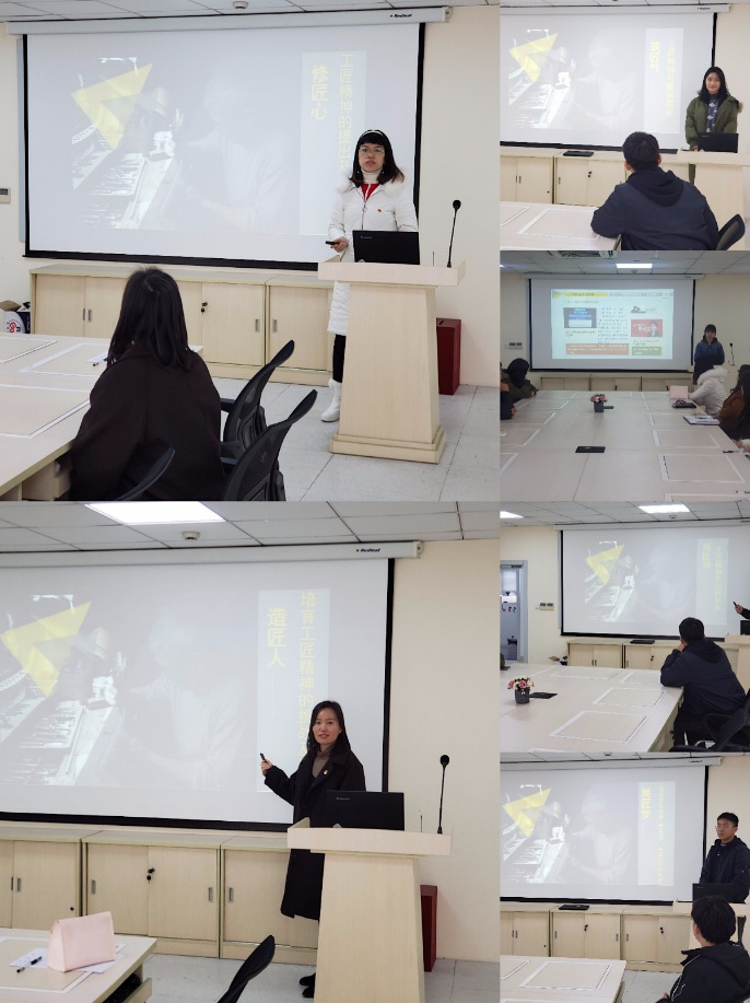 11月下旬,学院党委倪智勇书记以溯匠源——工匠精神的内涵与本质为主题的精彩党课,拉开了“伟大工程”系列示范党课——咫尺匠心的序幕,此次试讲由管理系党支部书记刘春娣、管理系学生党支部书记武学慧、学生入党积极分子邵文龙、黄芳敏、朱欣妍、李玥分别围绕“修匠心——工匠精神的提出及时代意义”、 “造匠人——培育工匠精神的挑战及途径”“筑匠气——工匠精神与爱岗敬业”、“凝匠神——工匠精神与创新精神”、“铸匠魂——工匠精神与中国制造”、“展匠梦——引领青年培育工匠精神,共建共享中国梦”进行。工匠精神的内涵包含了对事物精益求精的态度,工匠精神是独具匠心的创造力,是坚持不懈的专注。这种工匠精神在教师身上体现为精益求精地备课,独具匠心地上课,坚持不懈地专注课堂。除此之外,教师内在人格品质更需要践行工匠精神,更需要不断自我提升内在的修为。