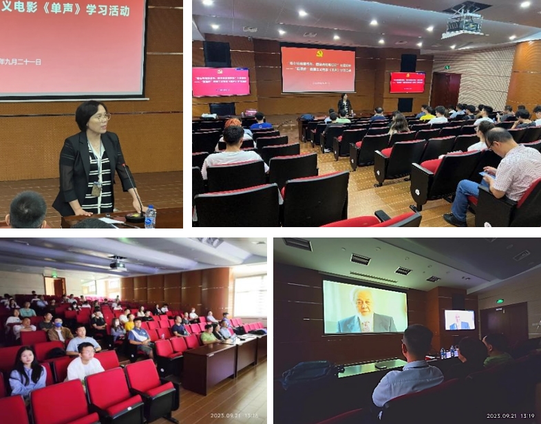 为庆祝中华人民共和国成立74周年,进一步弘扬爱国主义精神,加强爱国主义教育,9月21日下午,在上海市侨联的指导下,校党委统战部联合校侨联在航飞楼一楼报告厅举办“凝心铸魂强根基、团结奋进新征程”主题观影——“迎国庆”爱国主义电影《单声》学习活动。50余名侨界教师及学生参加此次活动,集中观看了爱国题材纪录电影《单声》。活动由校侨联主席钱慧敏主持。