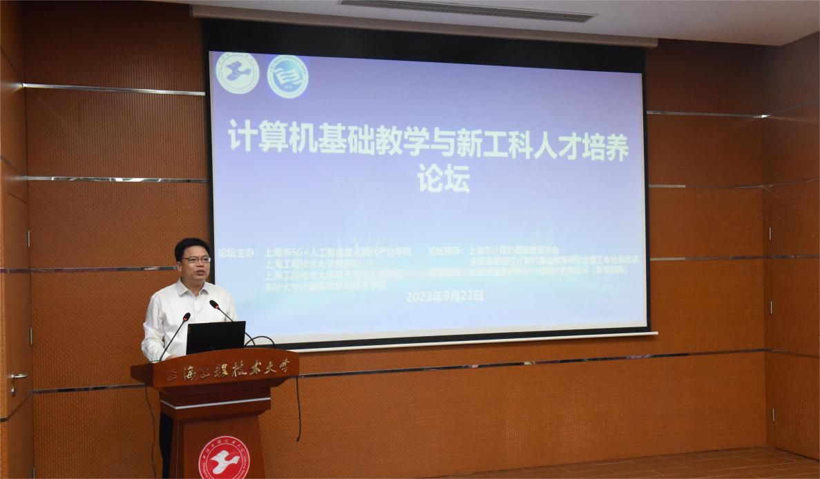 9月22日,2023上海工程技术大学计算机基础教学与新工科人才培养论坛在航飞楼一楼报告厅举行。本次论坛由上海市5G+人工智能重点现代产业学院,上海工程技术大学教务处、电子电气工程学院,东华大学计算机科学与技术学院主办,上海市计算机基础教育协会、全国高等院校计算机基础教育研究会理工专业委员会指导。论坛旨在持续推进大学信息技术教育,提升师生的计算思维和信息素养,完善大学信息技术教育课程及其资源构建。