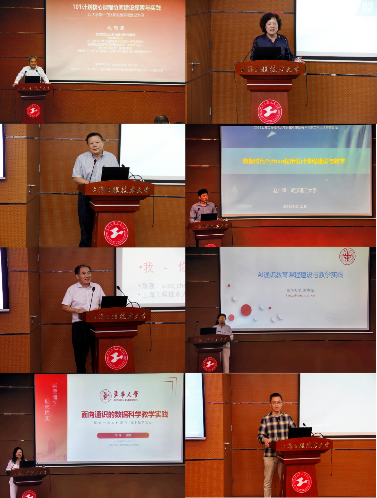 同济大学杨志强教授、武汉理工大学赵广辉教授、上海工程技术大学陈强教授、东华大学刘晓强教授、东华大学宋晖教授、讯飞高教人才培养研究院副院长于俊博士分别以“融合新一代信息技术改革大学计算机课程”“数智时代Python程序设计课程建设与教学”“地方工科高校计算思维与信息素养课程体系构建思考”“AI通识教育课程建设与教学实践”“面向通识的数据科学教学实践”“大模型时代背景下的产业人才培养模式实践与探讨”为题进行了论坛报告。从不同课程,不同角度给出了各自所在高校的建设方案和建议,给大家带来了非常先进的教学理念和方法。