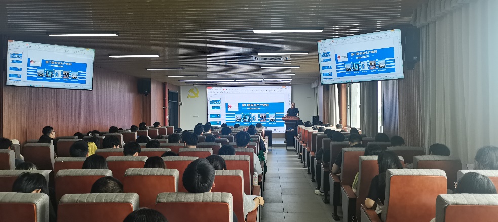经过前期校企双方的密切沟通与合作筹备,9月11日,上海地铁维护保障有限公司车辆分公司人事部胡家安、综合运转部谭一舟和李峰赴上海工程技术大学城市轨道交通学院,与城市轨道交通学院副院长栾东庆、交通运输系系主任朱海燕和本次产教融合实习带教老师胡华、陈颖雪和郝妍熙三位老师一起,为全体同学开展了实习动员和安全培训,让同学们在实习前全面了解实习目的、实习教学计划、安全要点和考核要求等,并在统一购买实习保险的基础上让每位同学自愿签署了实习安全责任书,为本次产教融合实习开创了良好开端。