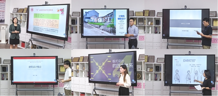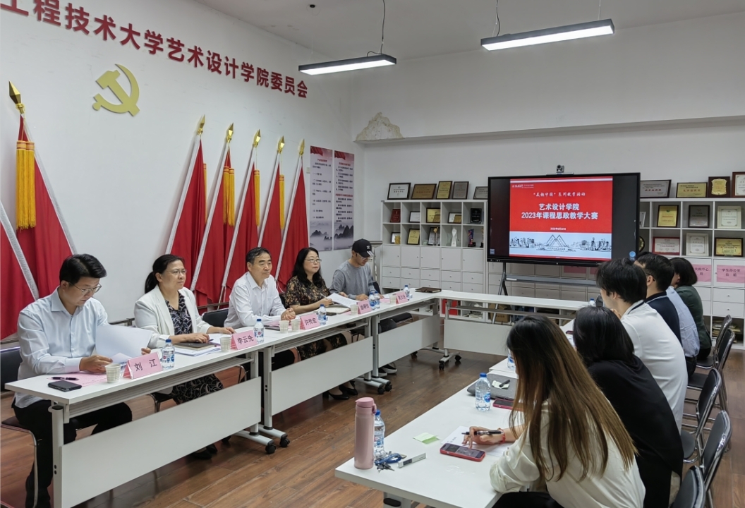为深入贯彻落实党的二十大精神和习近平总书记关于课程思政的重要论述,全面推进课程思政建设,落实立德树人根本任务,9月22日下午,艺术设计学院党委“美韵中国”系列教学活动暨2023年课程思政教学大赛在艺术楼A412举行。大赛特邀原马克思主义学院党委书记许传宏、教务处副处长金晓怡两位专家莅临指导,艺术设计学院党委书记李云先、副书记刘江、副院长吴文治出席了本次大赛。大赛由吴文治主持。