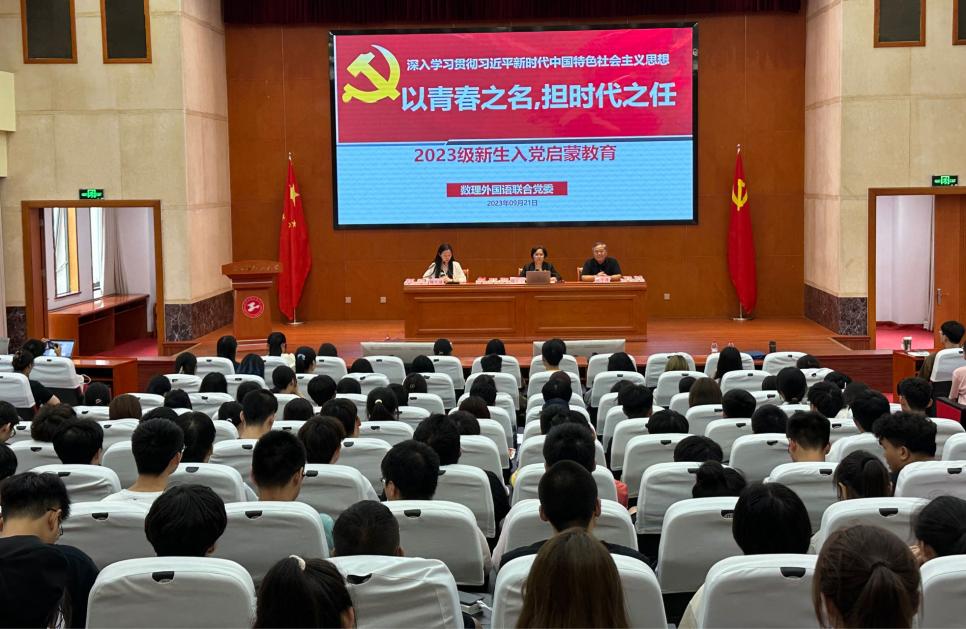 9月21日下午,数理外国语联合党委在行政楼B301会议室,开展深入学习贯彻习近平新时代中国特色社会主义思想“坚定不移听党话、学思践悟筑信仰”专题入党启蒙课。联合党委书记钱慧敏,联合党委关工委副主任、原基础教学学院张子厚院长,学院全体辅导员、2023级新生参加启蒙课。联合党委副书记梅元媛主持。